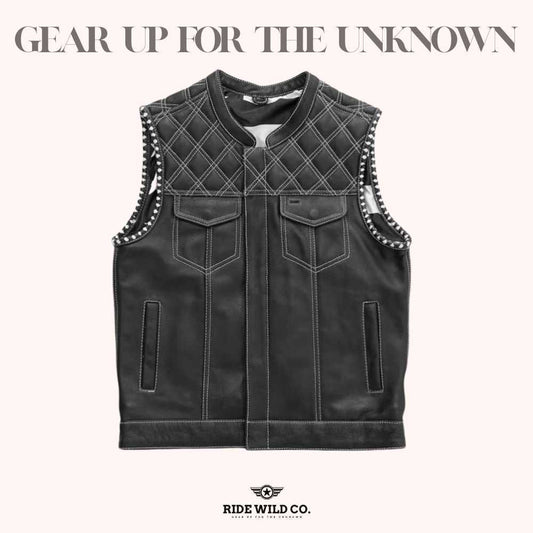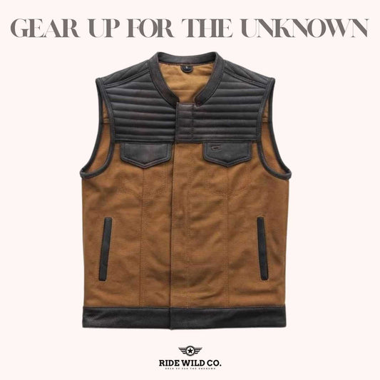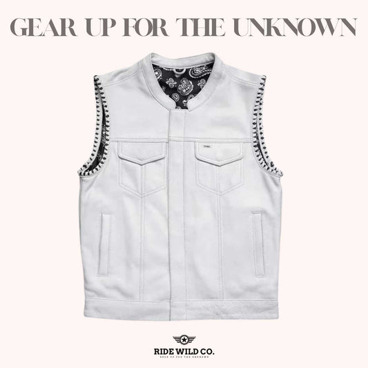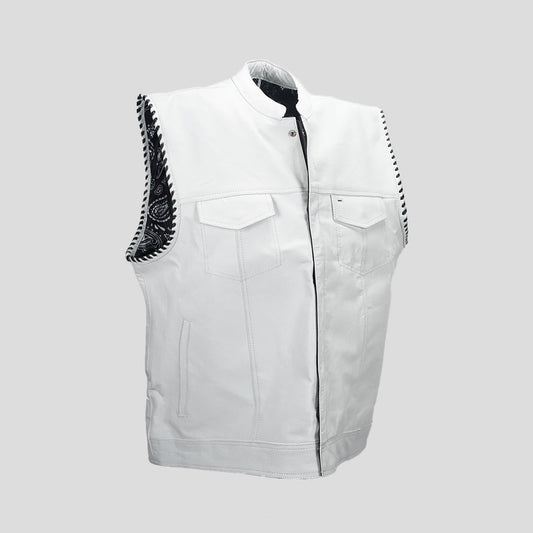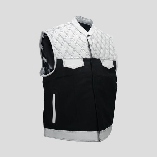Ivory Ice Luxe Men's Leather Motorcycle Canvas Vest