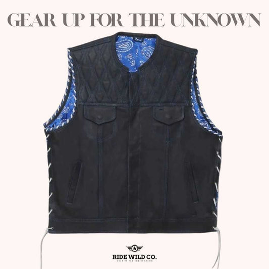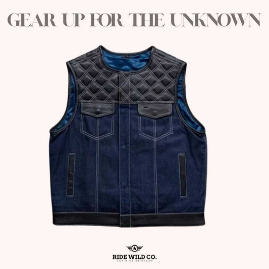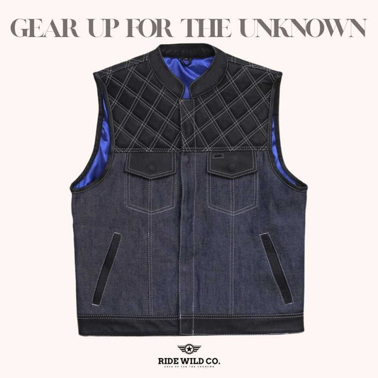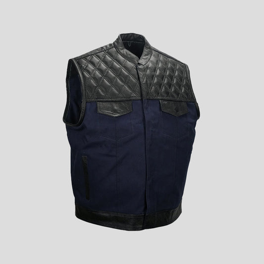 Rugged Denim Diamond Quilted Men Denim Motorcycle Vest