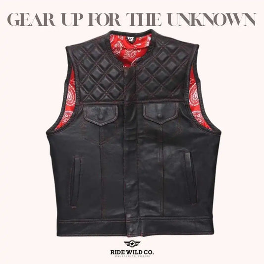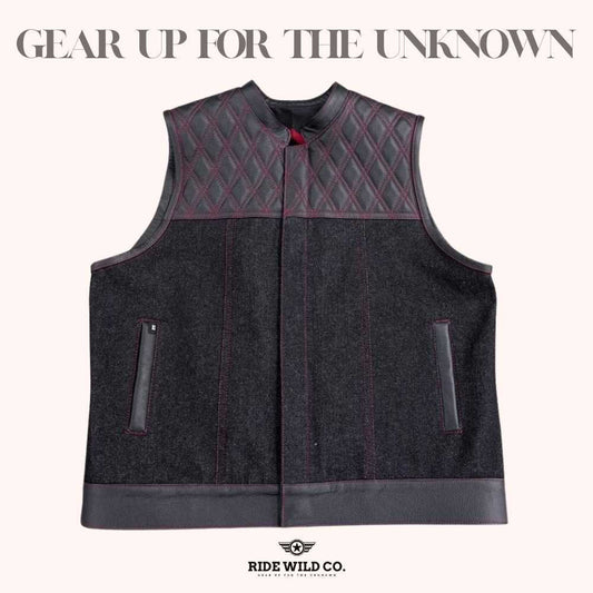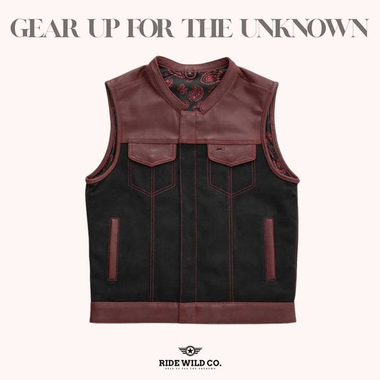 OX Blood Men's Leather & Canvas Club Biker Vest