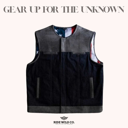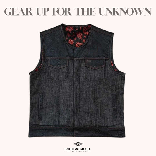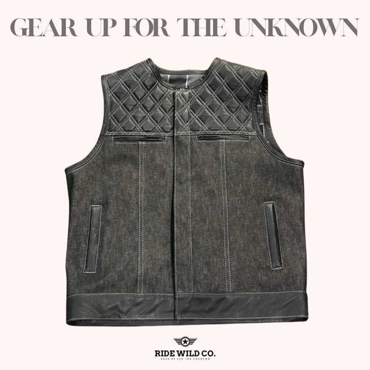 Hunt Club Outlaw Men Leather / Denim Biker Vest