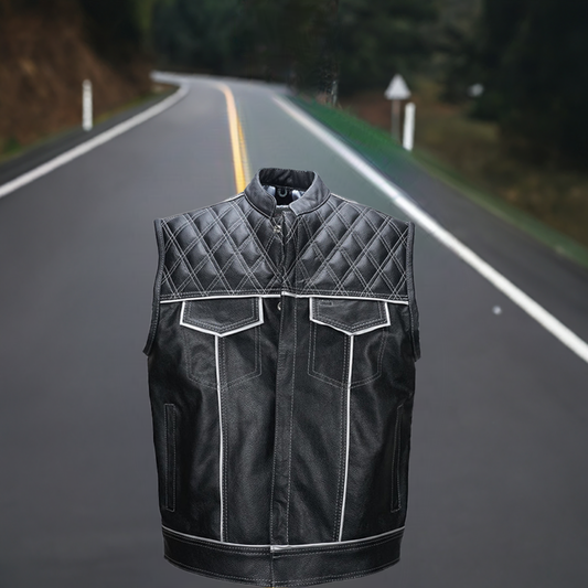Black Checkered Diamond-Stitched Men's Biker Vest