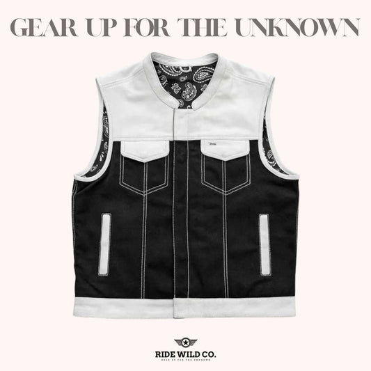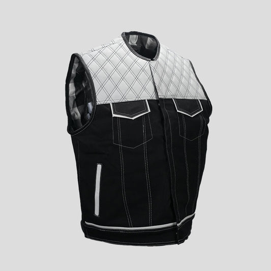 Ivory Ice Luxe Men's Leather Motorcycle Canvas Vest