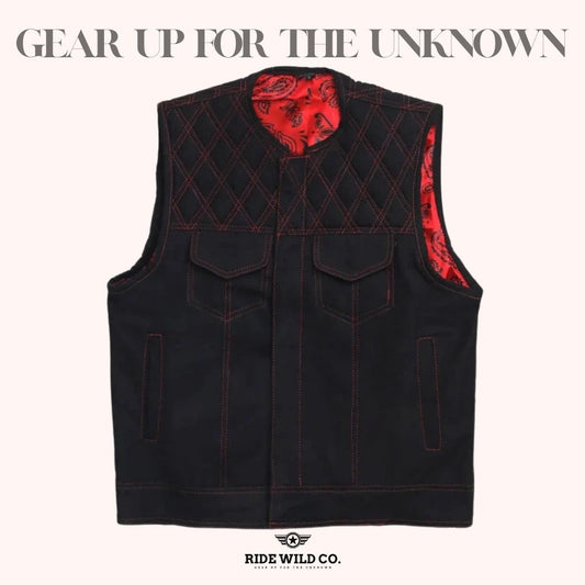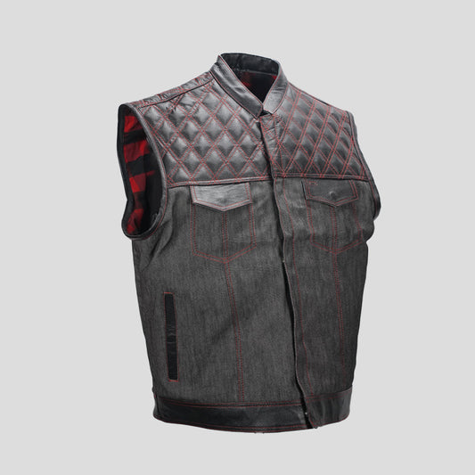 OX Blood Men's Leather & Canvas Club Biker Vest
