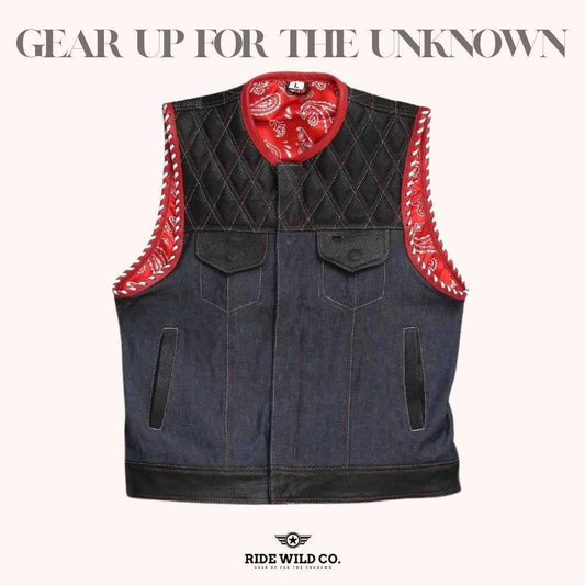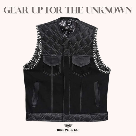 Hunt Club Outlaw Men Leather / Denim Biker Vest